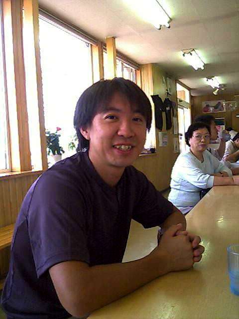 若干時間があるので、札幌市郊外のトミー・シゲさんのラーメン店「めんぞう」屯田店に 寄ろうと言う事になった。トミー・シゲさんは、トライアスリート&サブスリーランナー である。オロロントライアスロンでは、エイジで準優勝されたこともある。 店内では、これからオロロンに向かうとう言う話で盛り上がった。おいしいチマキを頂き ました。(カーボローディング)もちろん、ラーメンもおいしかったです。 左の写真は、保苅さん。 |